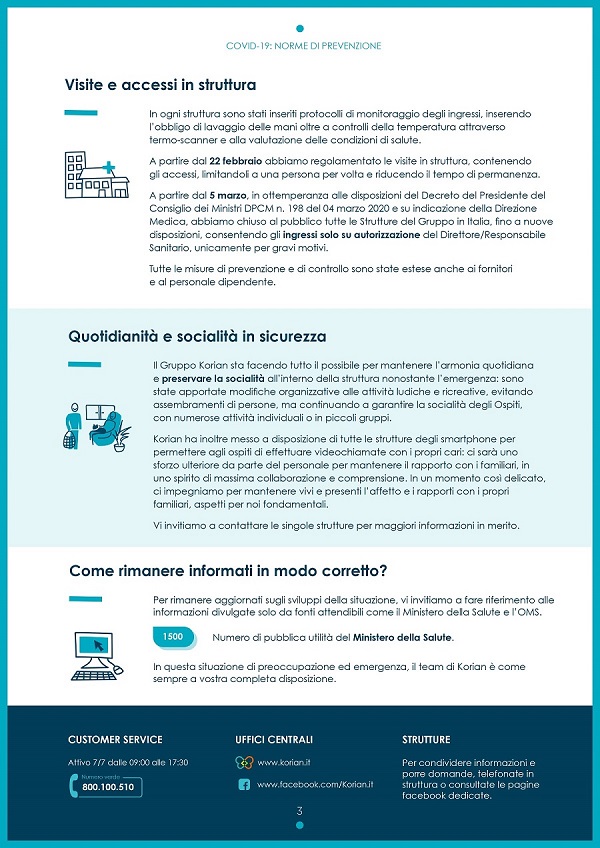 In questa situazione difficile e complessa e alla luce delle indicazioni della Presidenza del Consiglio, del Ministero della Salute e delle Regioni, Kormed si è attivato per tutelare tutti gli ospiti, i pazienti, i familiari e gli operatori del Gruppo.
